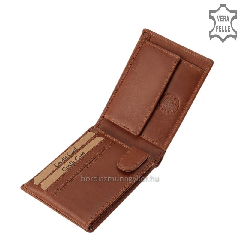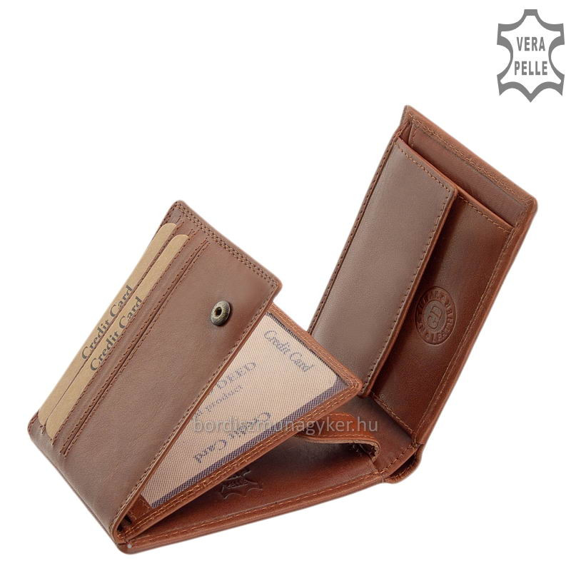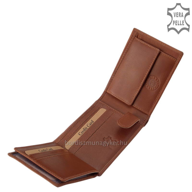 Kisméretű férfi bőr pénztárca klasszikus funkciókkal, vintage stílusú elegáns külsővel, díszdobozban forgalmazott minőségi modell.