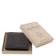 Малък модел портфейл, предназначен за нашите клиенти мъже, с практичен интериор, дизайнерска външна част от естествена кожа, в качествена подаръчна опаковка.
