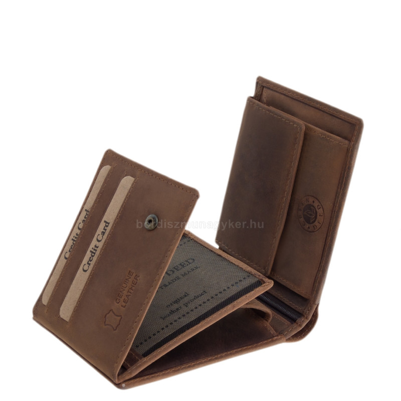 A pénztárca bőrének különféle barna színárnyalatai a fényképhez képest világosabb vagy sötétebb színű is lehet a bőr jellege miatt.