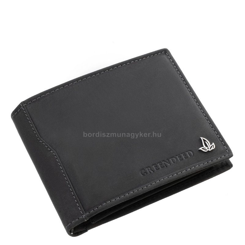 Elegant metalen logo, merk GreenDeed, herenportemonnee van echt leer, kwaliteitsmodel met opvallende geschenkverpakking.