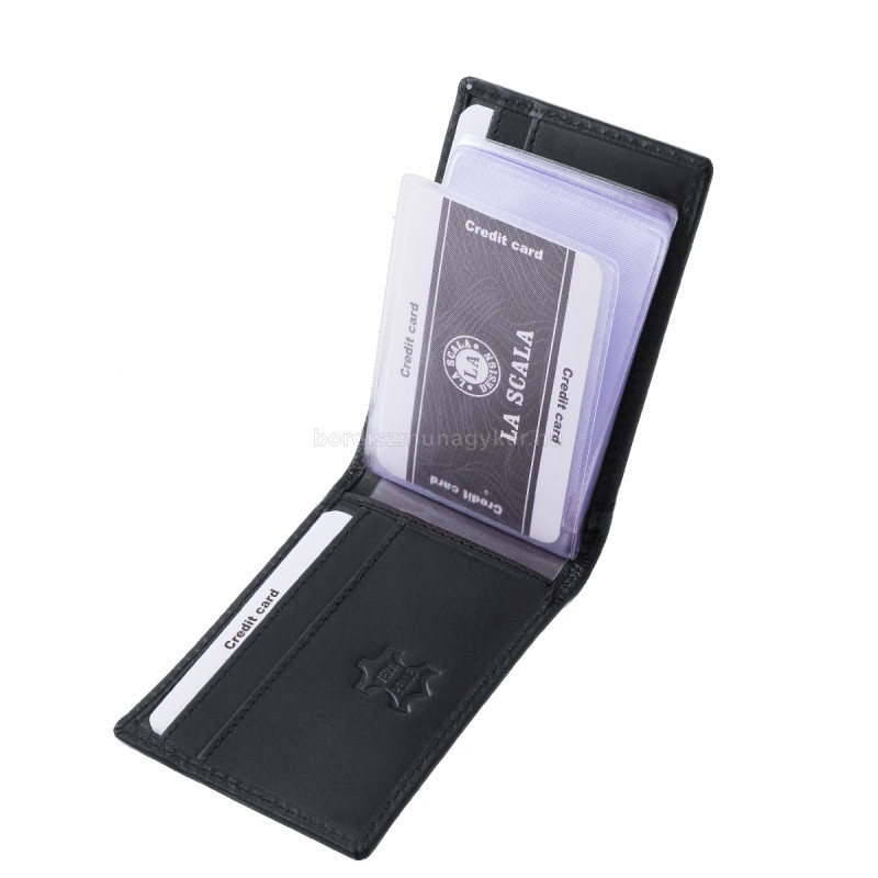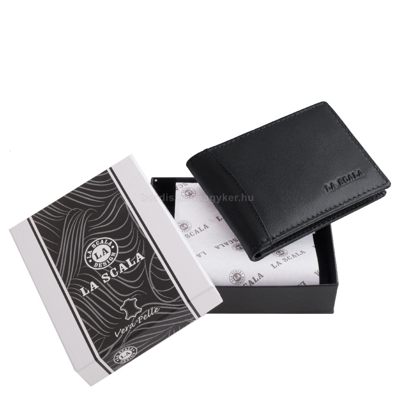 Etui na karty z prawdziwej skóry w pudełku prezentowym La Scala ADQ30809 czarny