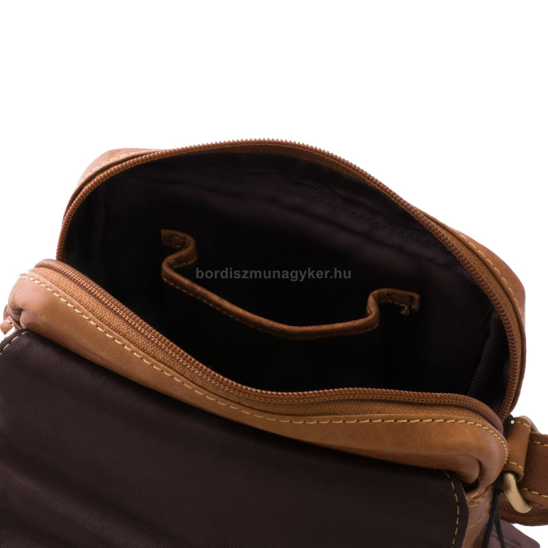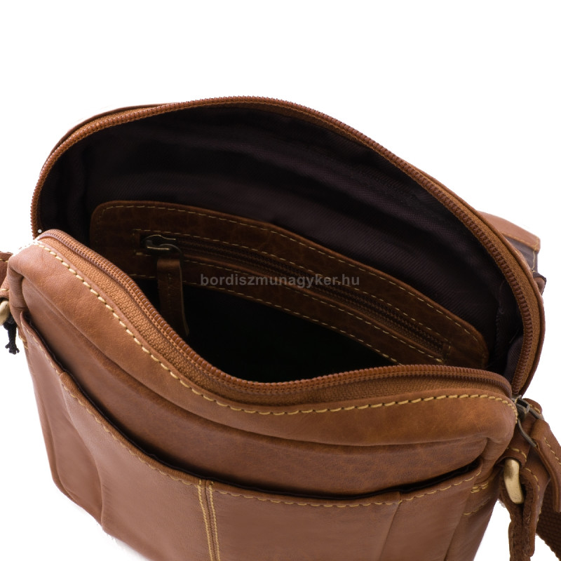 Praktikus sokzsebes férfi táska, kellemes barna színű valódi bőr alapanyagból, sportos használatra is tökéletes minőségi termékünk.