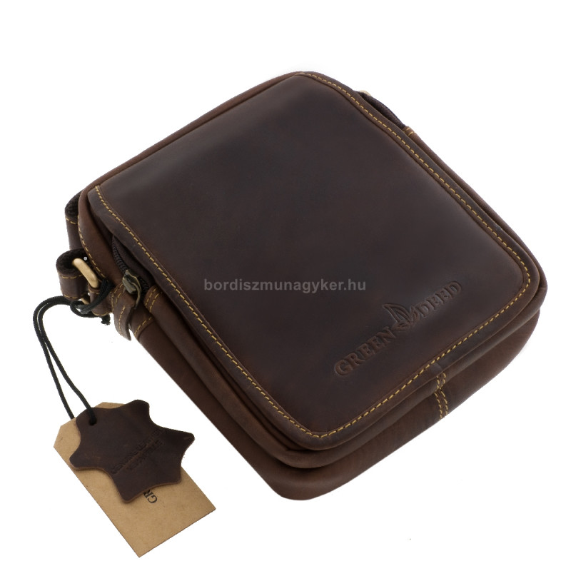 Sportosan elegáns sötétbarna színárnyalatú, GreenDeed márkás valódi bőr táska, elsősorban férfi vásárlóink számára tervezett praktikus belsővel.