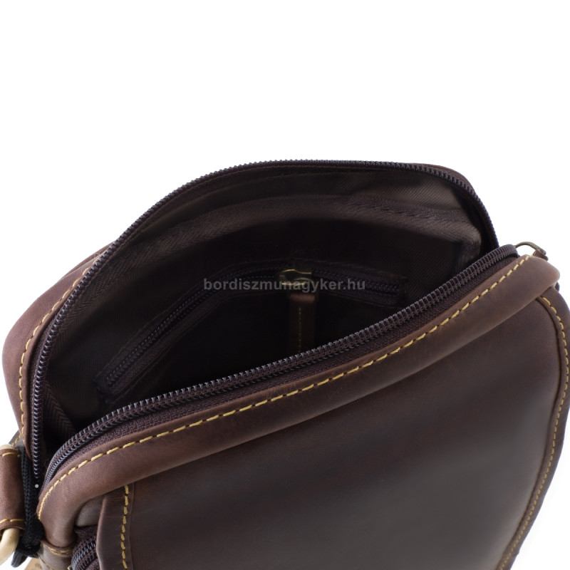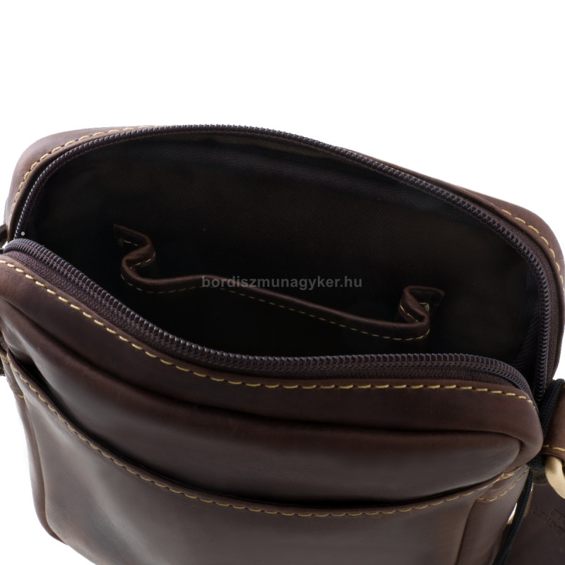 Sötétbarna színben készült, sportosan elegáns valódi bőr táska