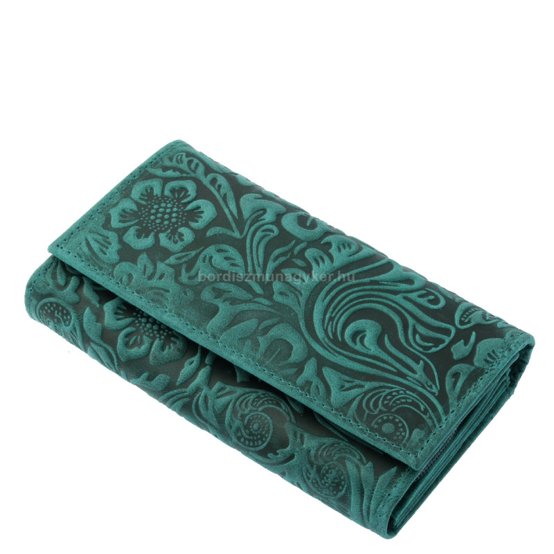 Női pénztárca virágmintás Sylvia Belmonte valódi bőrből DVM100 türkiz