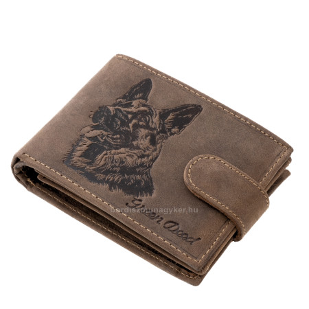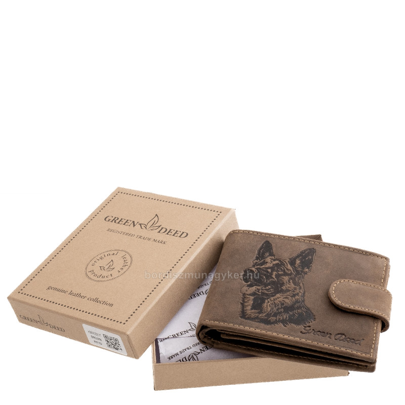 Ægte læder pung med en naturlig overflade og et unikt, detaljeret schæfer mønster, pakket i en kvalitetsgaveæske fra GreenDeed.