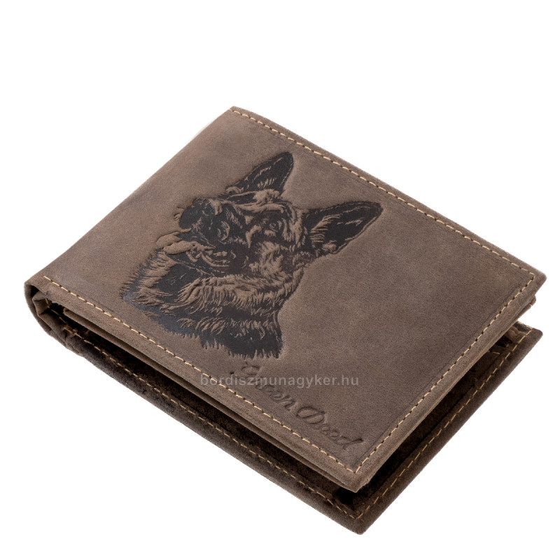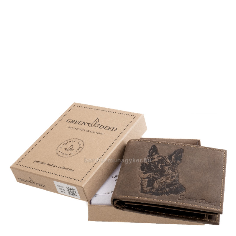 Wyjątkowy portfel dla psa owczarka niemieckiego z powierzchnią z naturalnej skóry z efektem naturalnym, w wysokiej jakości opakowaniu prezentowym, produkt rodziny marek GreenDeed.