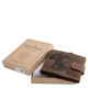 Produkt dostarczany jest w naturalnym pudełku prezentowym wykonanym z surowego papieru, które idealnie komponuje się z rustykalnym charakterem portfela.