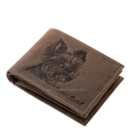 Portofel din piele naturală, a cărui capac este decorată cu un model unic de câine yorkie