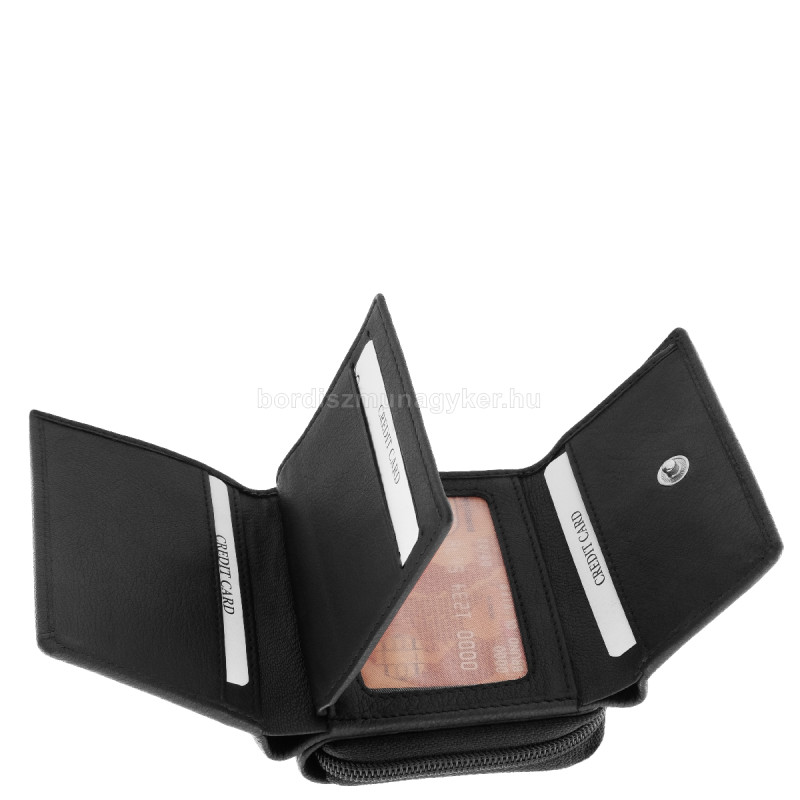 Vnitřek peněženky obsahuje odklápěcí kapsy na karty a doklady, zatímco přihrádky z průhledné fólie jsou ideální pro uložení průkazů totožnosti s fotografií.