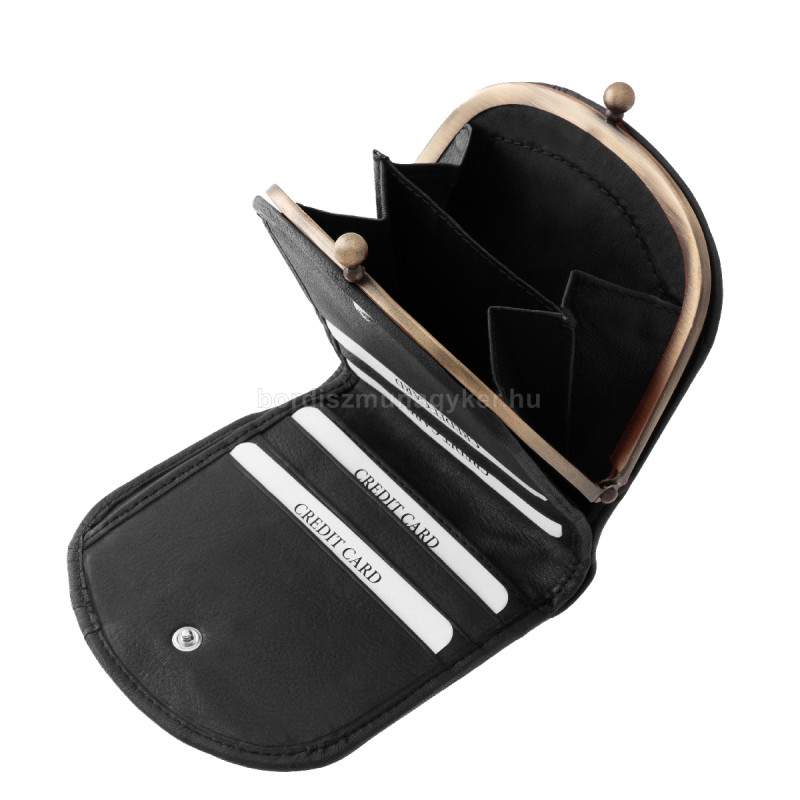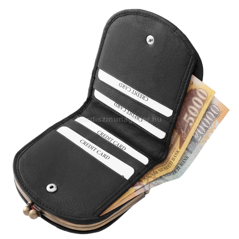 - Peněženka na mince s kovovým rámem , kterou lze samostatně otevřít, takže přístup k mincím je rychlý a snadný.