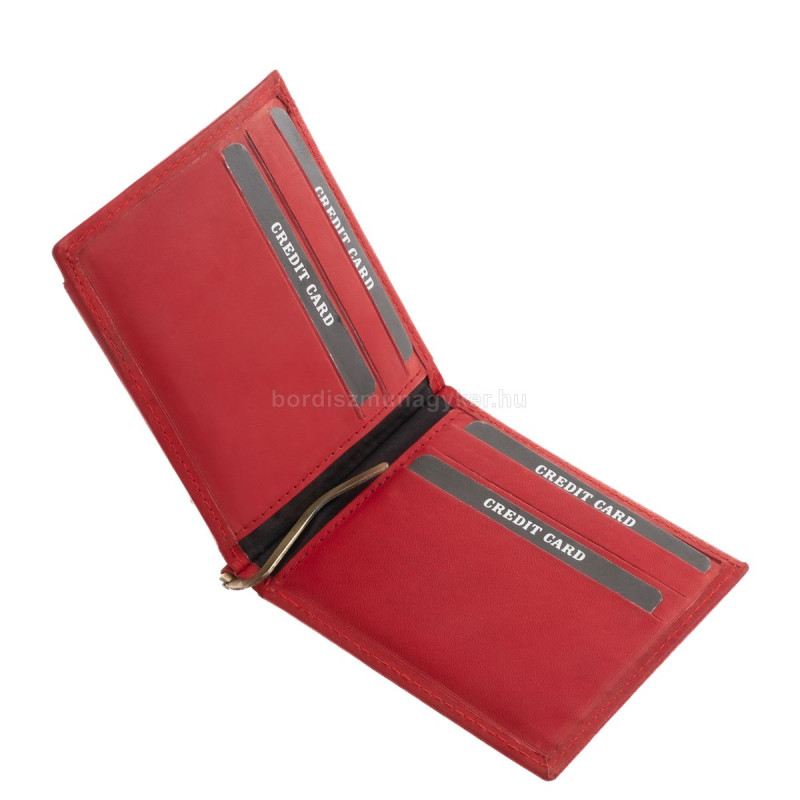 A tárca praktikus belső elrendezésében helyet kaptak a kártyatartó rekeszek és egy pénzcsipesz, amely biztonságosan tartja a bankjegyeket, megakadályozva azok kicsúszását.