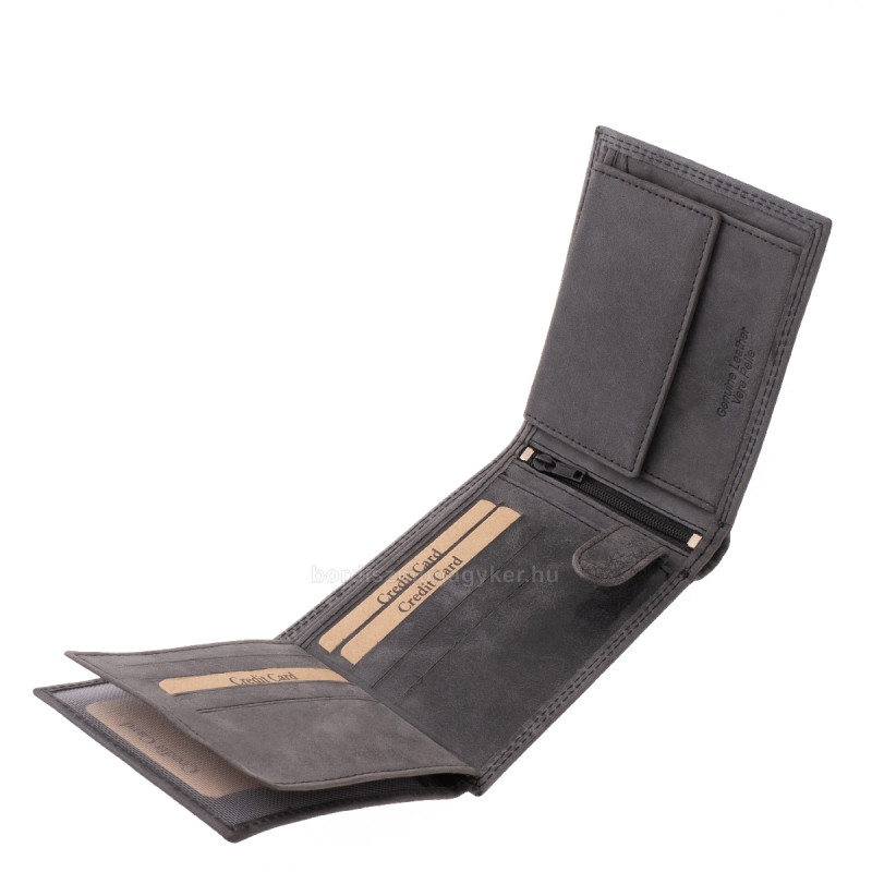 Táto športová kožená peňaženka je nielen estetická, ale aj vysoko funkčná. Jeho interiér je navrhnutý tak, aby sa v ňom pohodlne zmestila hotovosť, bankové karty, občianske preukazy a iné doklady.