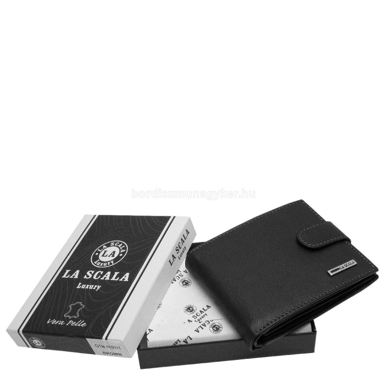 Kakovostna moška usnjena denarnica La Scala v elegantni darilni škatli - z zaskočnim stikalom na pokrovu