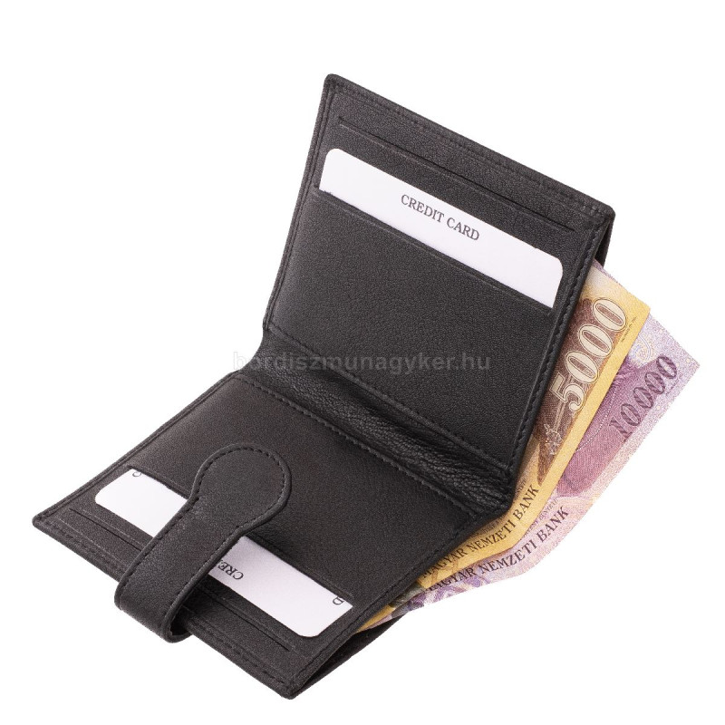 A termék belsejében kártyatartó és irattartó zsebek, mögöttük pedig egy papírpénztartó zseb is található.