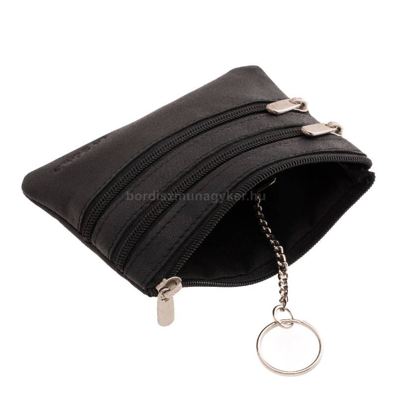 A kulcstartó cipzárral záródó rekeszekkel rendelkezik, amelyek biztonságos tárolást biztosítanak apróbb tárgyak vagy érmék számára.