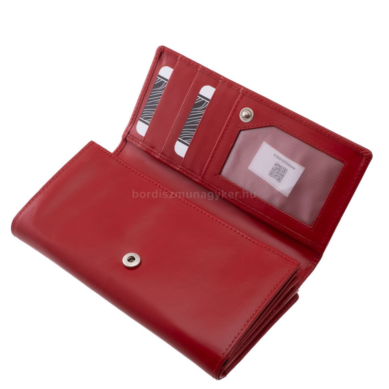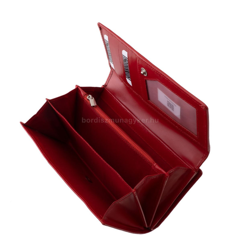 A divatos női pénztárca belső kialakítása átgondolt és praktikus – számos rekeszt és tárolóhelyet kínál, hogy minden, a nők által fontosnak tartott apróság – legyen szó készpénzről, apróról, kártyákról vagy iratokról – rendezetten és könnyen elérhetően elférjen benne.
