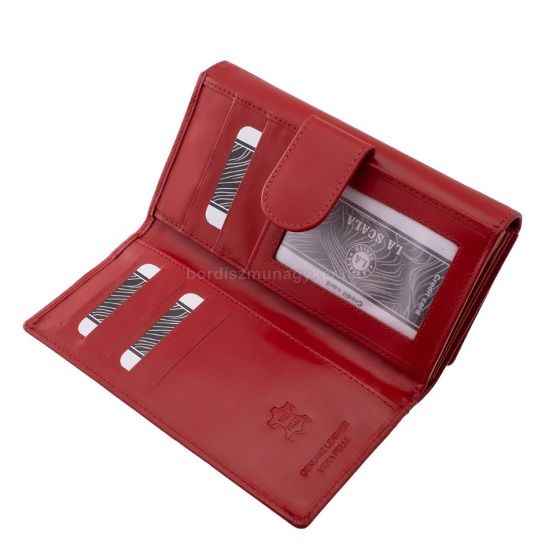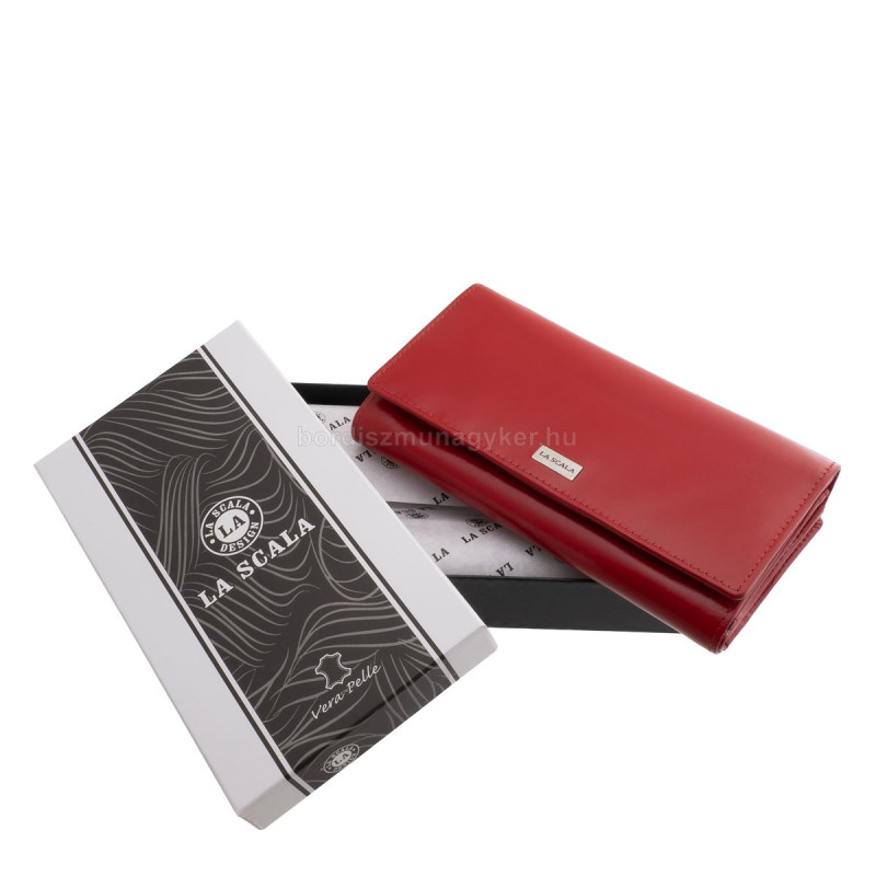 Praktikus kialakítású, La Scala márkás, könnyen hozzáférhető, divatos és stílusos, valódi bőr, nagyméretű női pénztárca modell, elegáns díszdobozban szállítva.