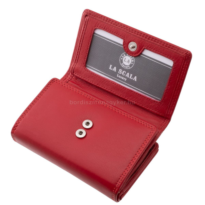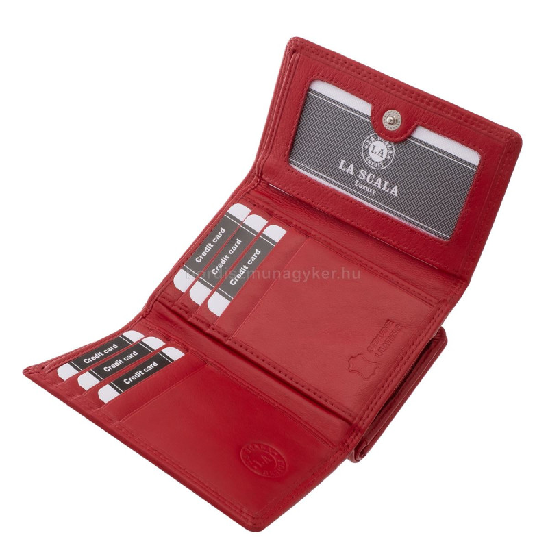 Divatos női bőr pénztárca izgalmas piros színben, melynek minőségi alapanyaga puha tapintású valódi bőr, a La Scala márkacsaládtól.