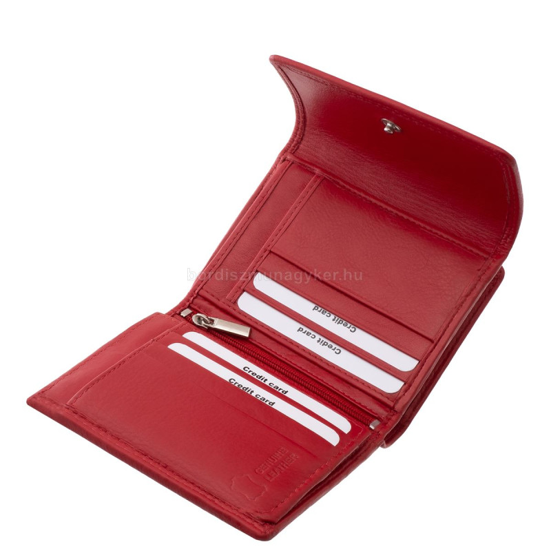 Kisméretű női pénztárca mely minőségi valódi bőr anyagból készült, praktikus kialakítású belsővel rendelkező divatos megjelenésű modell.