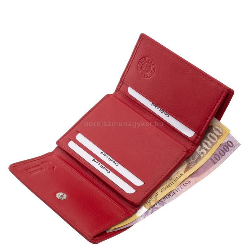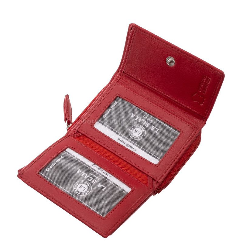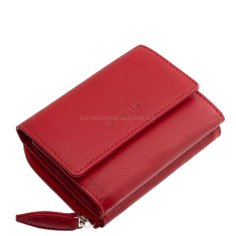 Divatos piros színű női pénztárca, puha tapintású valódi bőr modell a La Scala márkacsalád új, praktikus kialakítású, minőségi terméke.