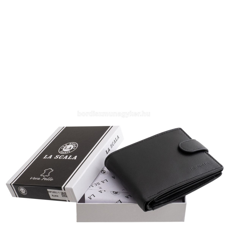 Pánska peňaženka La Scala z pravej kože - v elegantnej čiernej farbe, s vonkajším prepínacím remienkom a darčekovým balením