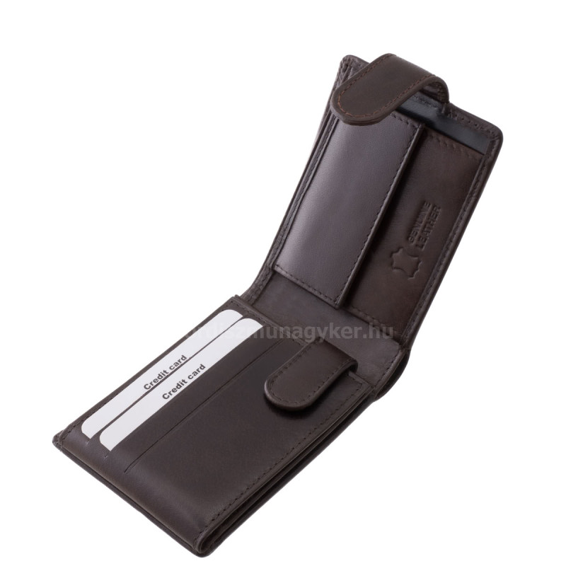 Elegáns, kisméretű valódi bőr férfi pénztárca patentos átkapcsoló pánttal, díszdobozban
