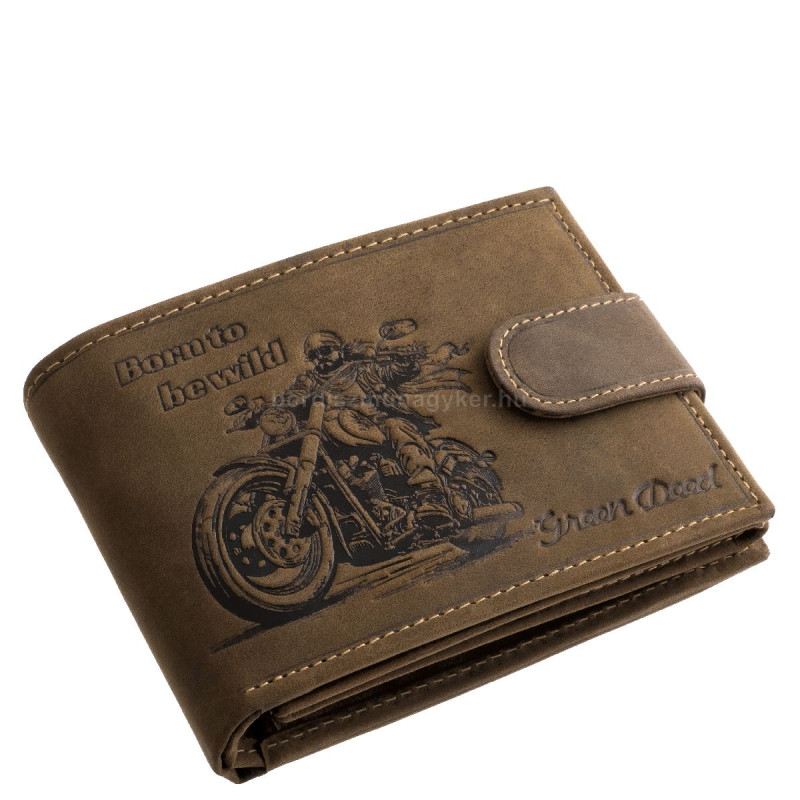 GreenDeed márkás, chopper motoros mintával ellátott, valódi bőr, férfi pénztárca modell, díszdobozban