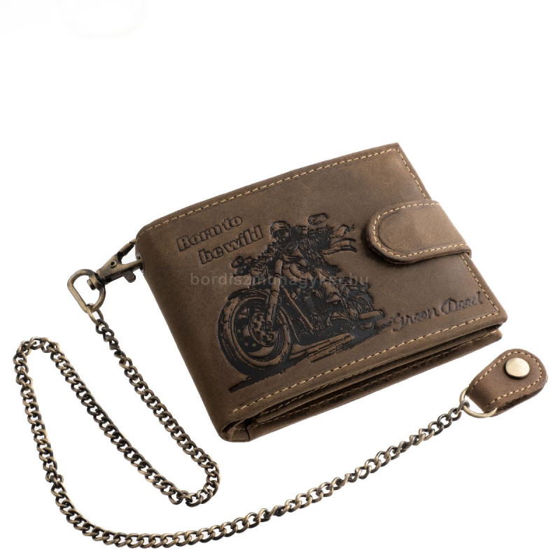 GreenDeed márkás, chopper motoros mintával ellátott, valódi bőr, férfi pénztárca modell, díszdobozban