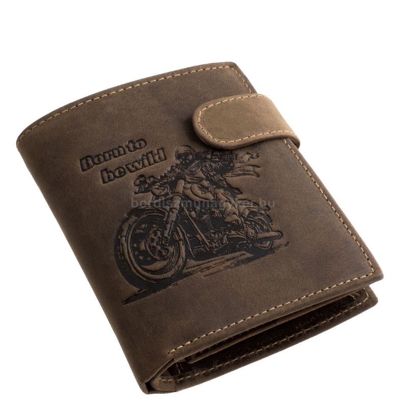Chopper motoros mintás, átkapcsoló pántos férfi bőr irattartó pénztárca – GreenDeed díszdobozban