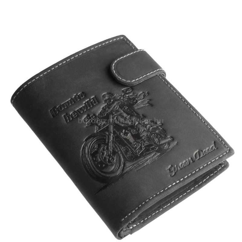 Chopper motoros mintás, átkapcsoló pántos férfi bőr irattartó pénztárca – GreenDeed díszdobozban