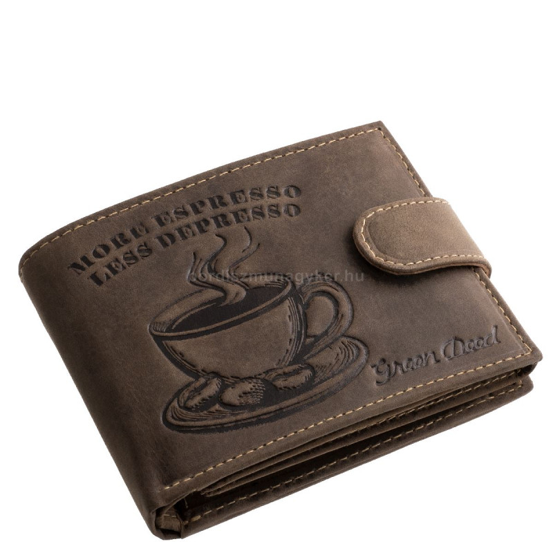 GreenDeed valódi bőr férfi pénztárca – kávés csésze mintával, patentos átkapcsolópánttal
