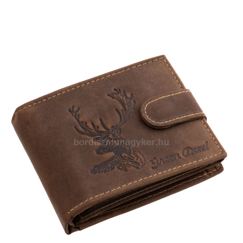 Portafoglio in vera pelle con motivo a cervo e cinturino con bottone automatico – GREEN DEED
