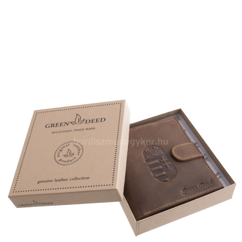 GreenDeed valódi bőr férfi irattartó pénztárca Magyar címer mintával MCIM02/T barna