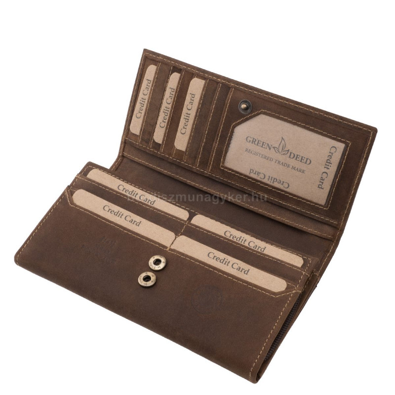 GreenDeed valódi bőr nagy méretű női pénztárca barna BHN281