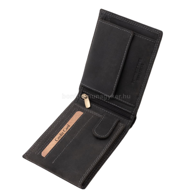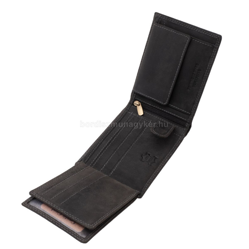 A pénztárca különleges részlete, hogy szélein színben harmonizáló, dupla díszítővarrás fut végig. Ez a megoldás egyszerre ad stílusosabb, igényesebb megjelenést, és jelentősen javítja a pénztárca időtállóságát, így tartósabb használatot eredményez.