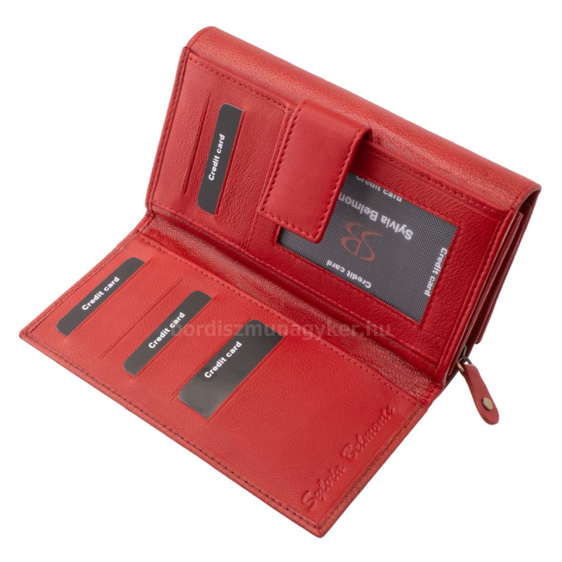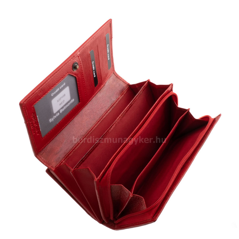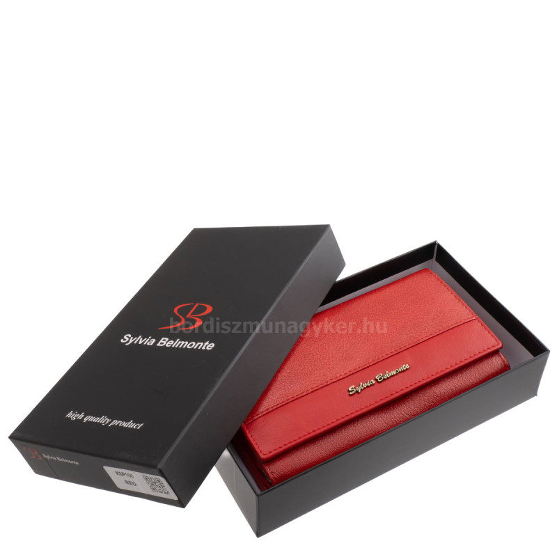 Nagy méretű női bőr pénztárca díszdobozban Sylvia Belmonte KSP108 piros