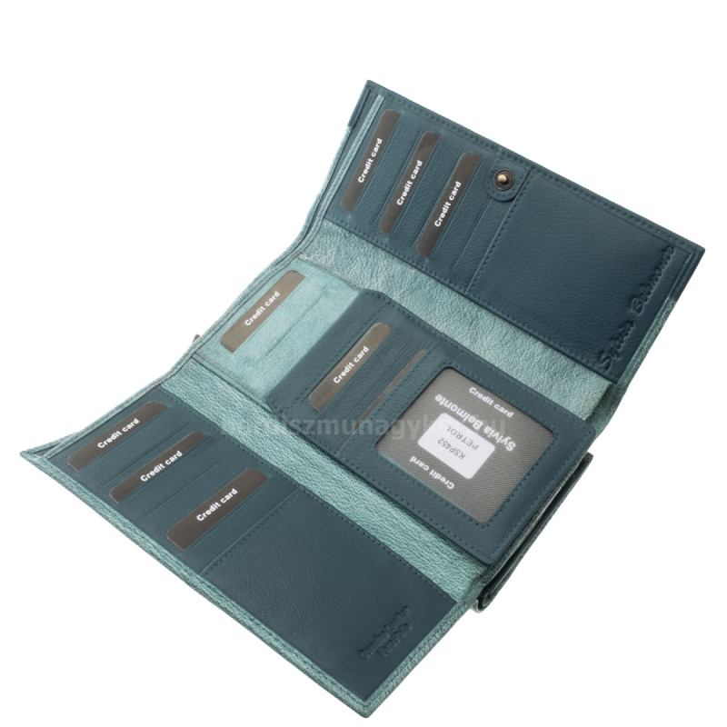 Nagy méretű női bőr pénztárca díszdobozban Sylvia Belmonte KSP452 petrol