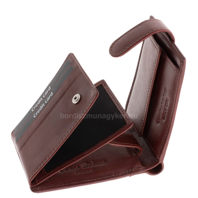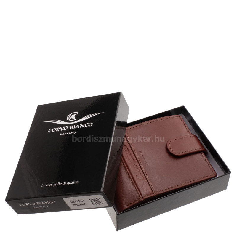 CORVO BIANCO Luxury márkás kisméretű, elegáns stílusú férfi bőr pénztárca modell, stílusos díszdobozban, fedelén átkapcsoló pánttal.
