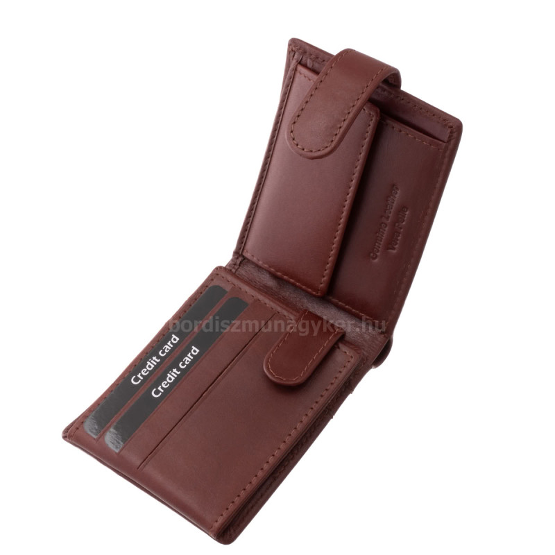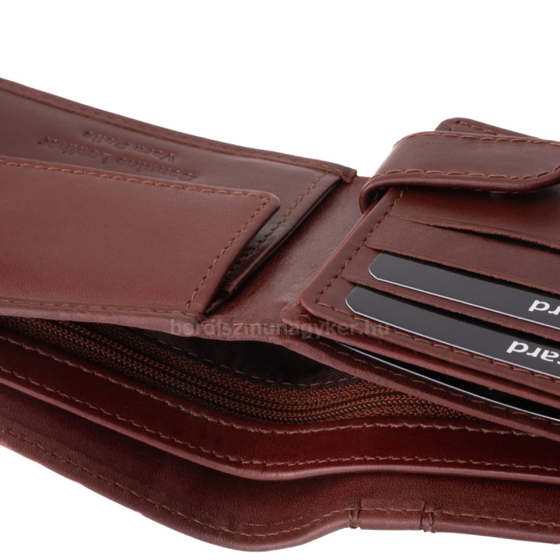 A pénztárca fekete, barna és világosbarna színben készül, selyemfényű, valódi bőrből, amely egyszerre sugároz stílust, minőséget és időtálló eleganciát.