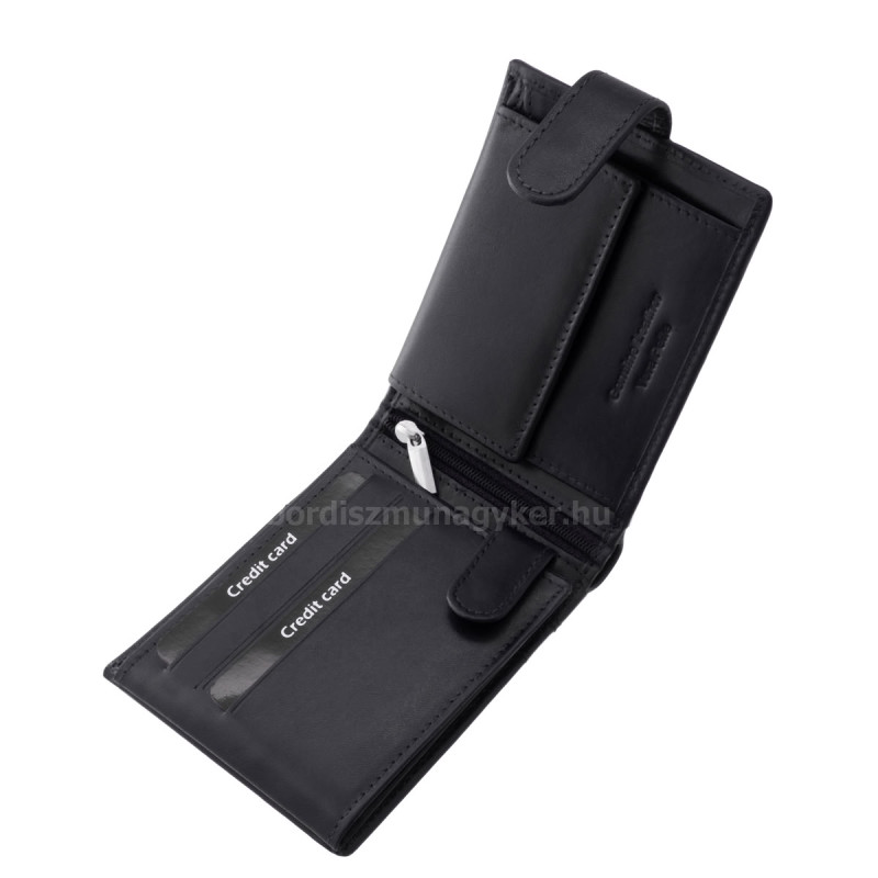 A belső elrendezésnek köszönhetően ez a bőr pénztárca egyszerre praktikus, rendezett és férfias.