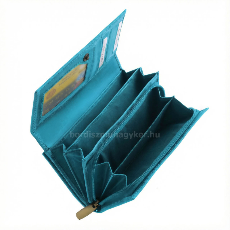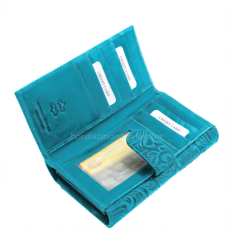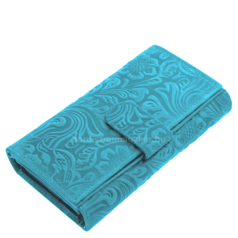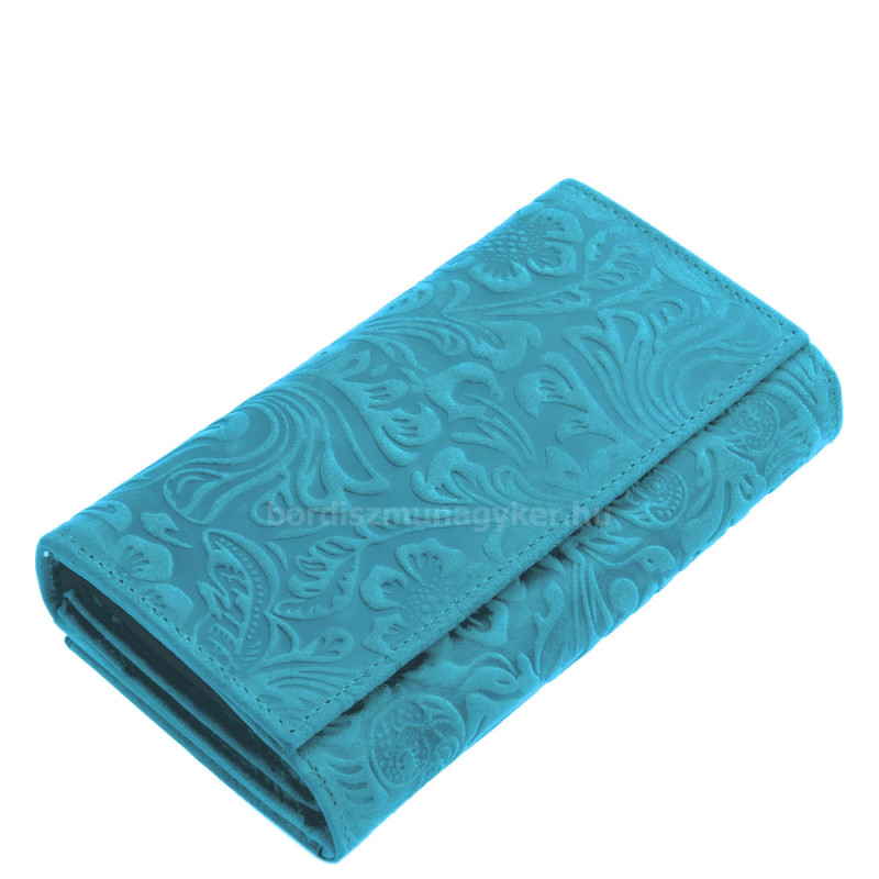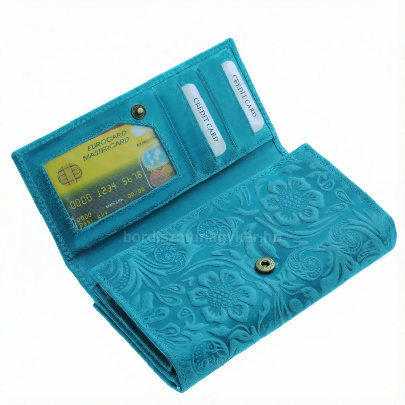 Női pénztárca virágmintás Sylvia Belmonte valódi bőrből DVM35 világos türkiz