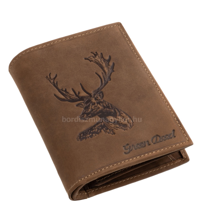 Álló kivitelű, valódi bőr dámszarvas mintás férfi irattartó pénztárca a GreenDeed márkacsalád természetközeli megjelenésű modellje.
