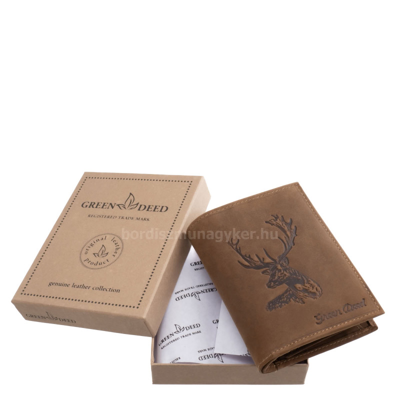Dámszarvas mintás bőr irattartó pénztárca díszdobozban GreenDeed SZVR3072 barna