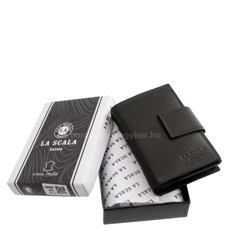 La Scala valódi bőr női pénztárca RFID fekete ANC062