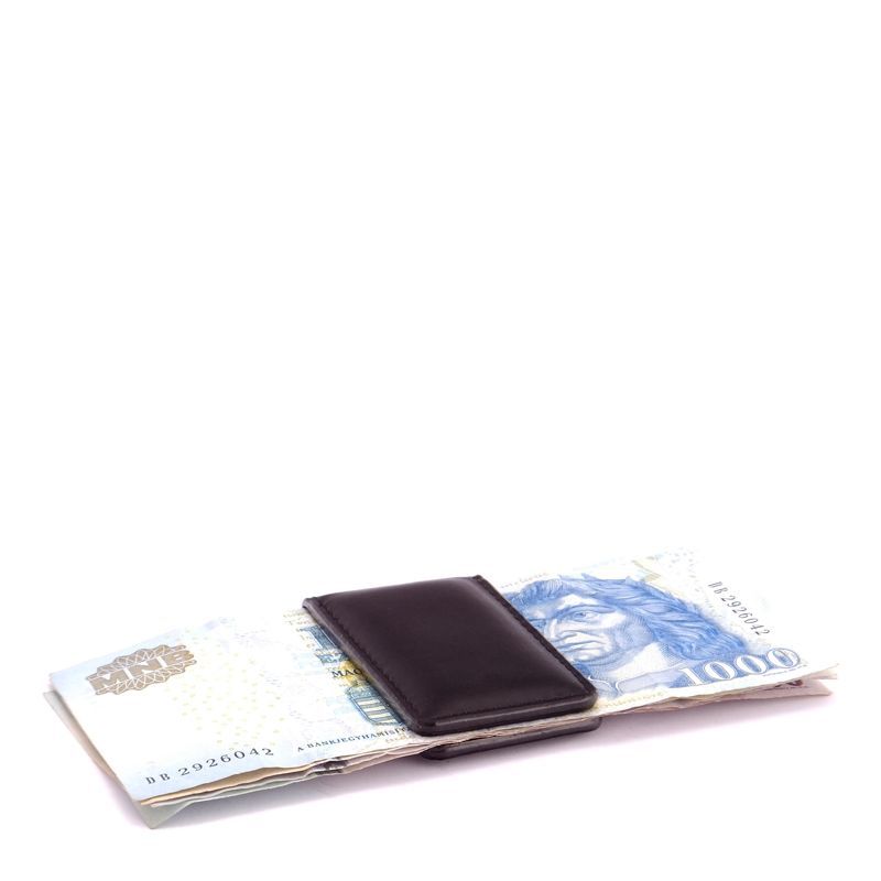 Pengeklemme lavet af slidstærkt okselæder med en stærk, skjult magnet.