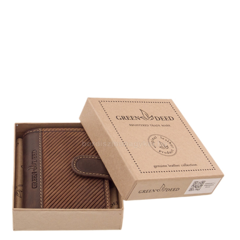• Notranjost ima vtisnjen okrogel logotip GreenDeed in napis "Genuine Leather Vera Pelle", ki nakazujeta zajamčeno visoko kakovost pravega usnja in družino blagovne znamke.
