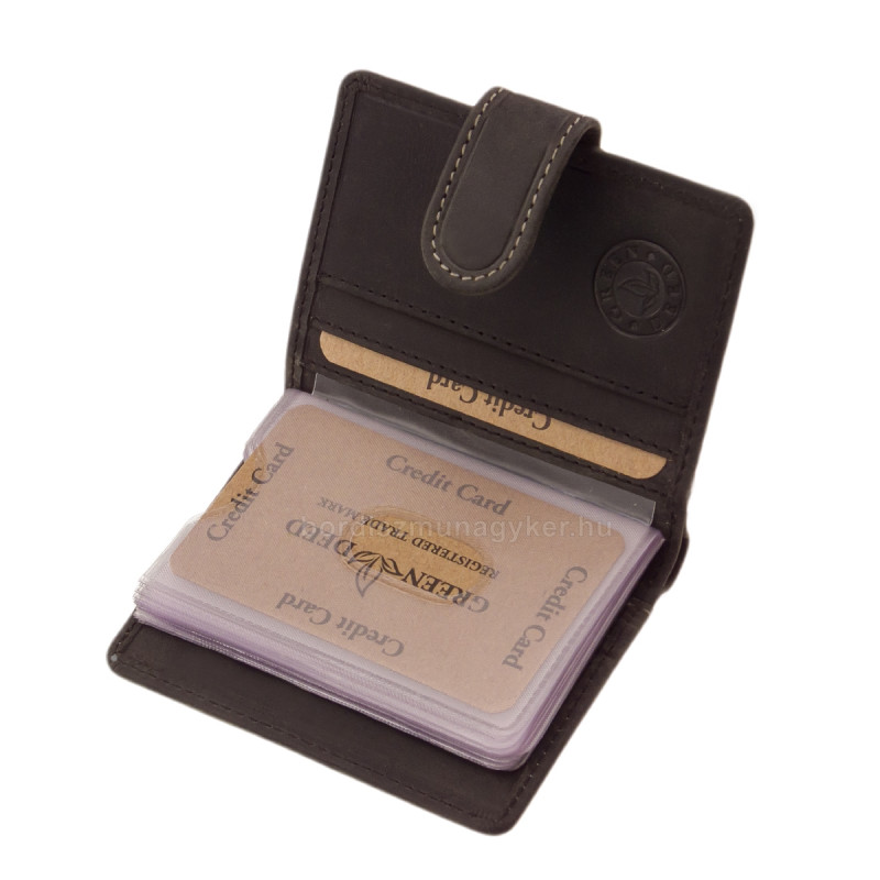 Sportliches Kartenetui aus Jägerleder, ein praktisches Modell mit hochwertigem GreenDeed-Markenaufdruck, im Geschenkbox-Design mit Natureffekt.