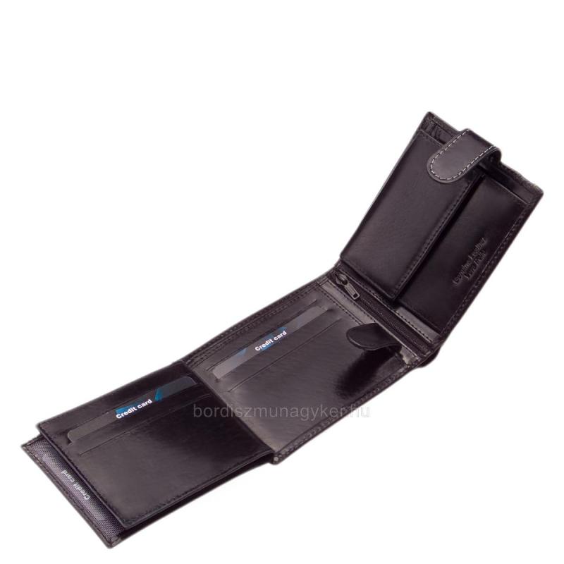 Elegancki wygląd portfela męskiego z włącznikiem wykonany jest z wysokiej jakości, błyszczącej skóry, która jest wykonana w 100% ze skóry naturalnej przy zastosowaniu nowoczesnej technologii.
