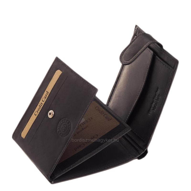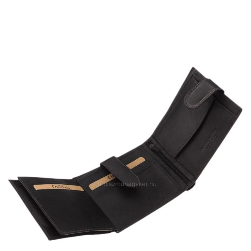 Ez a minőségi férfi pénztárca praktikus belső elrendezésű, mely gyors, kényelmes pénz- és kártyakezelési lehetőséget foglal magába.